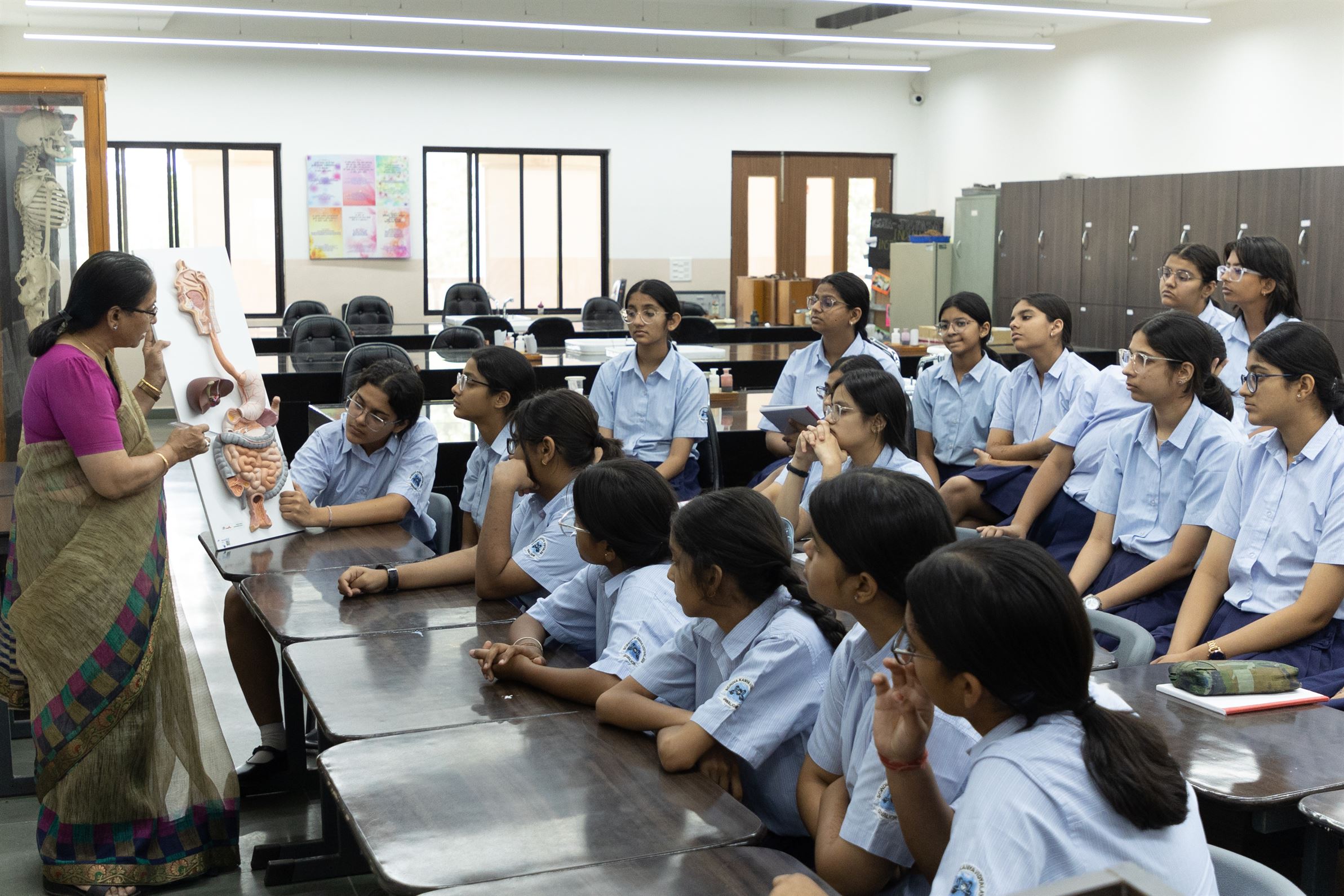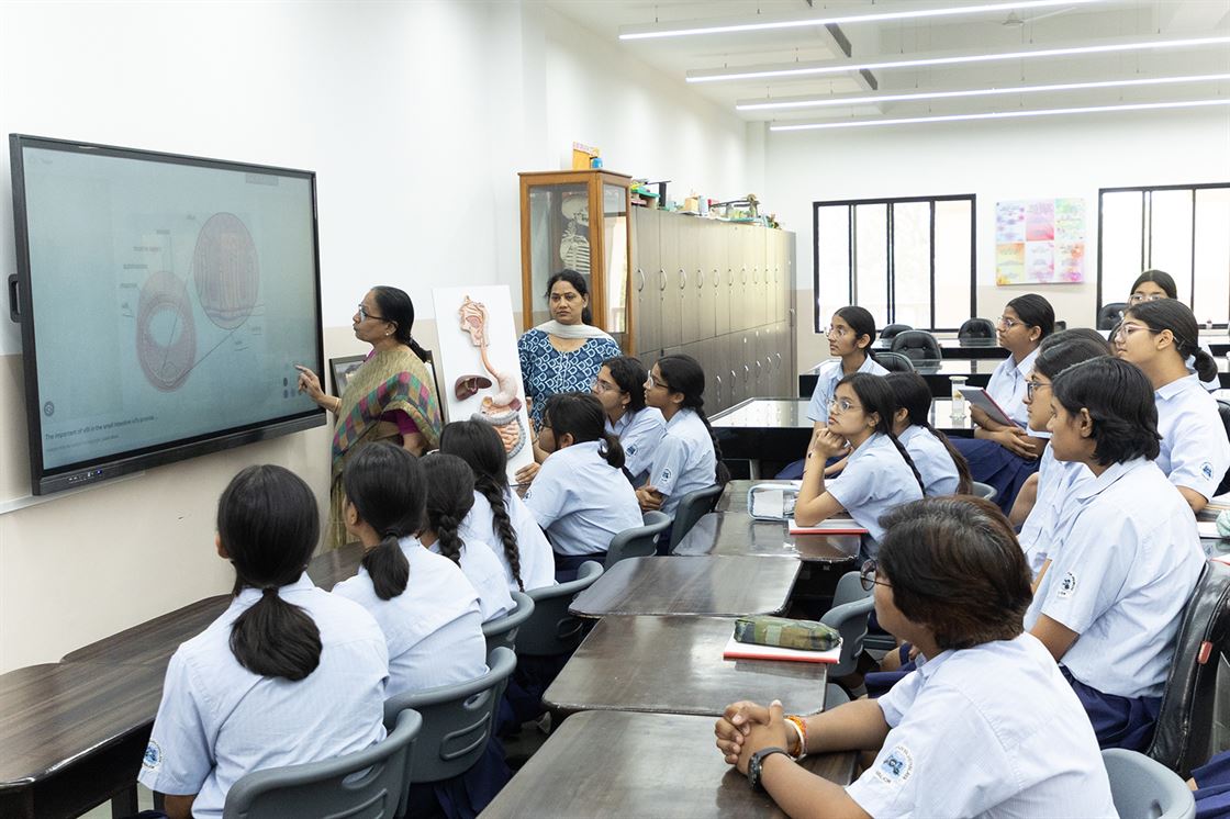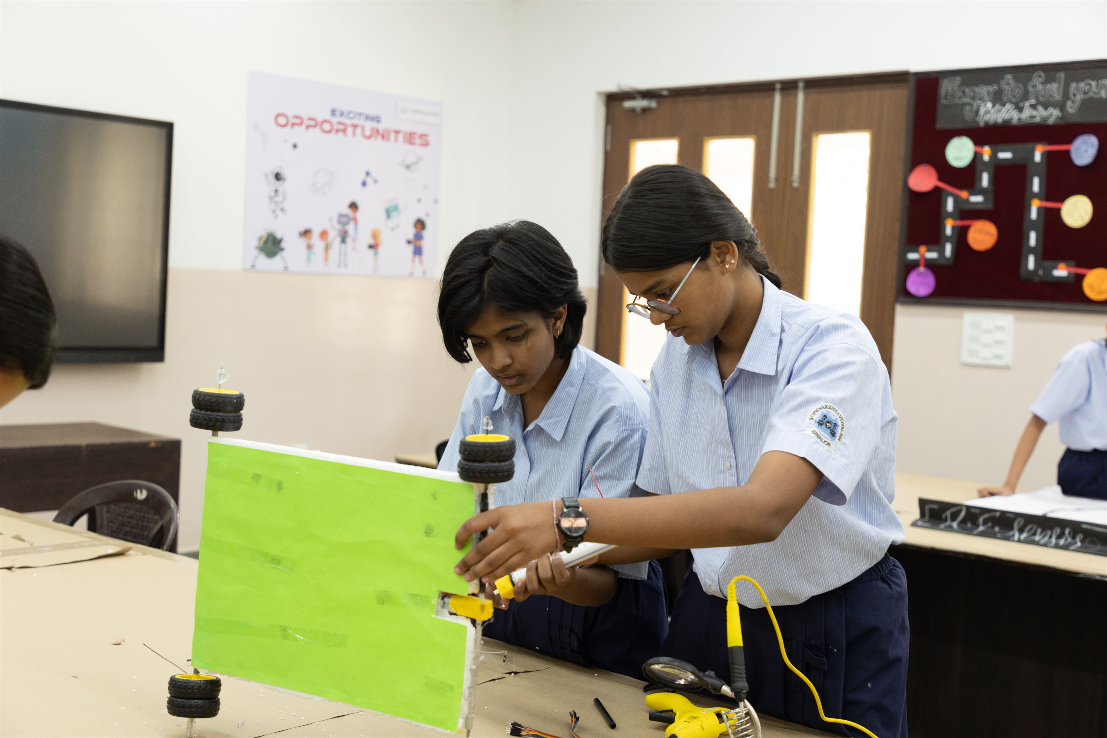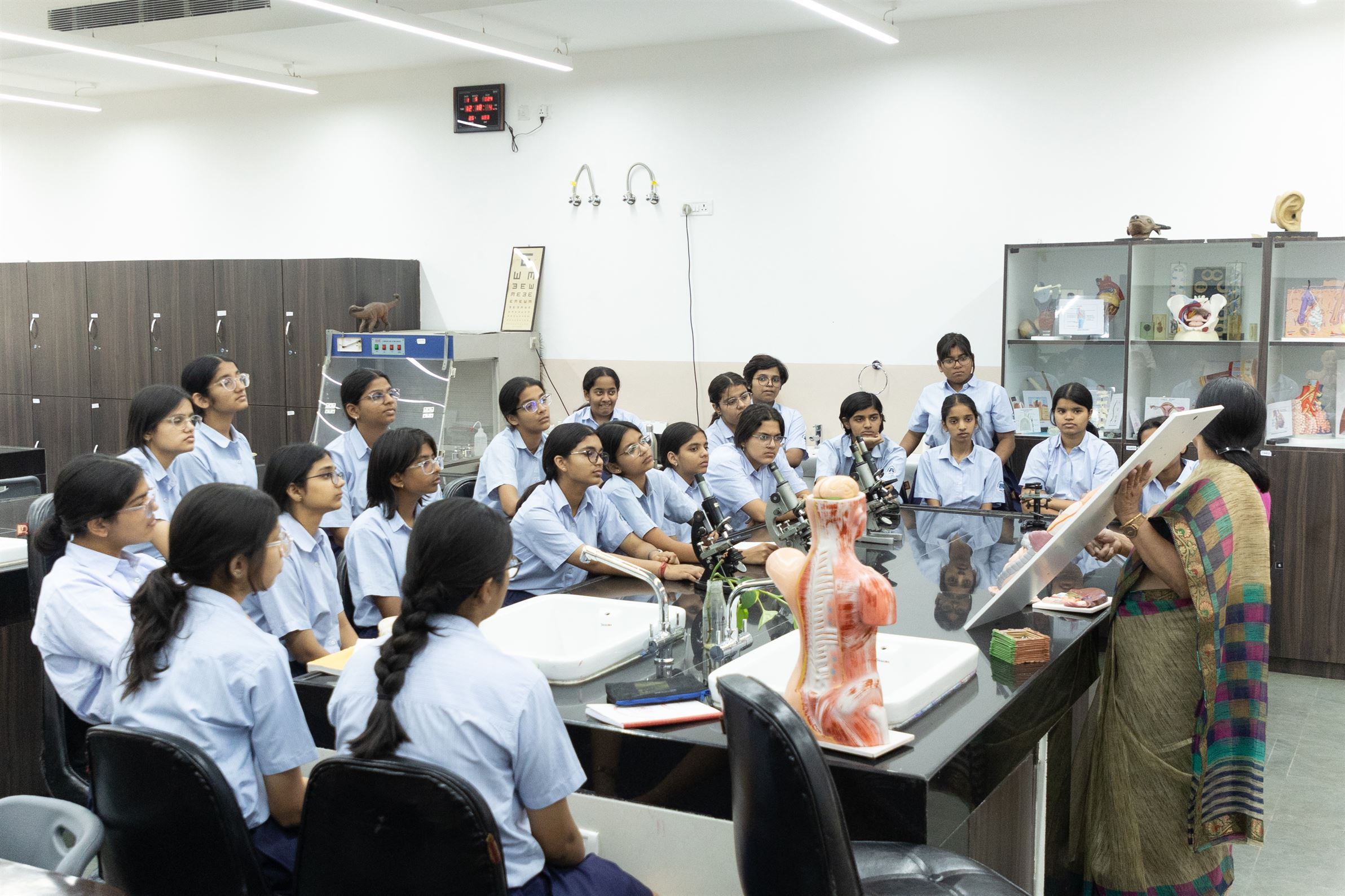 Explore and Experiment at SKV Labs! Our state-of-the-art labs provide a stimulating environment for hands-on learning across various disciplines. Conduct experiments in Biology, Chemistry, Physics, Biochemistry, and even delve into the human mind in the Psychology Lab. Hone your digital skills in our well-equipped Computer Labs, and explore the world through simulations and data in the Geography Lab. At SKV, we don't just study science, we create it! Experiment with the future in our Robotics Lab, or get a head start on financial literacy in the Mini Finance Lab. SKV Labs ignites curiosity and empowers you to become a master of discovery!