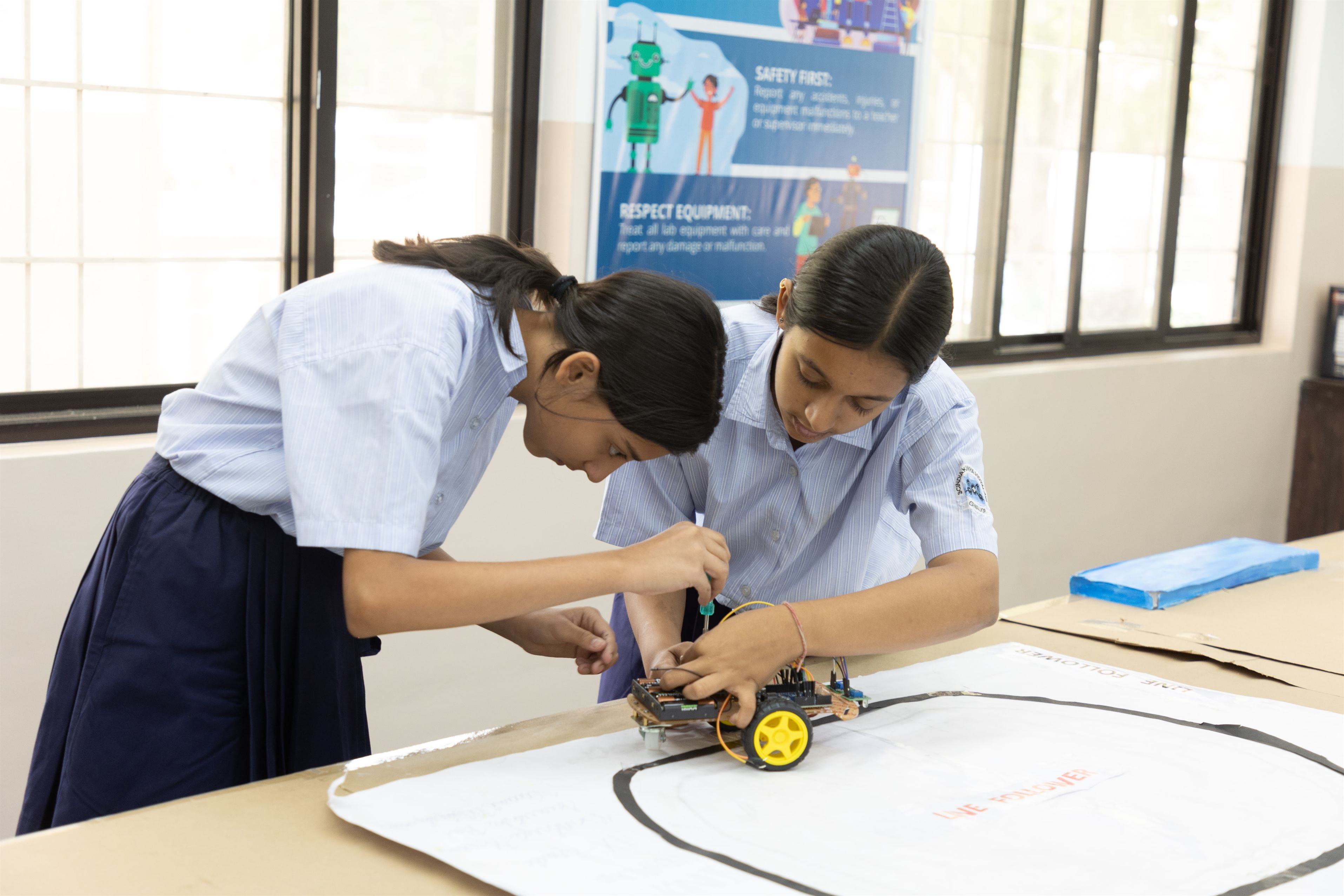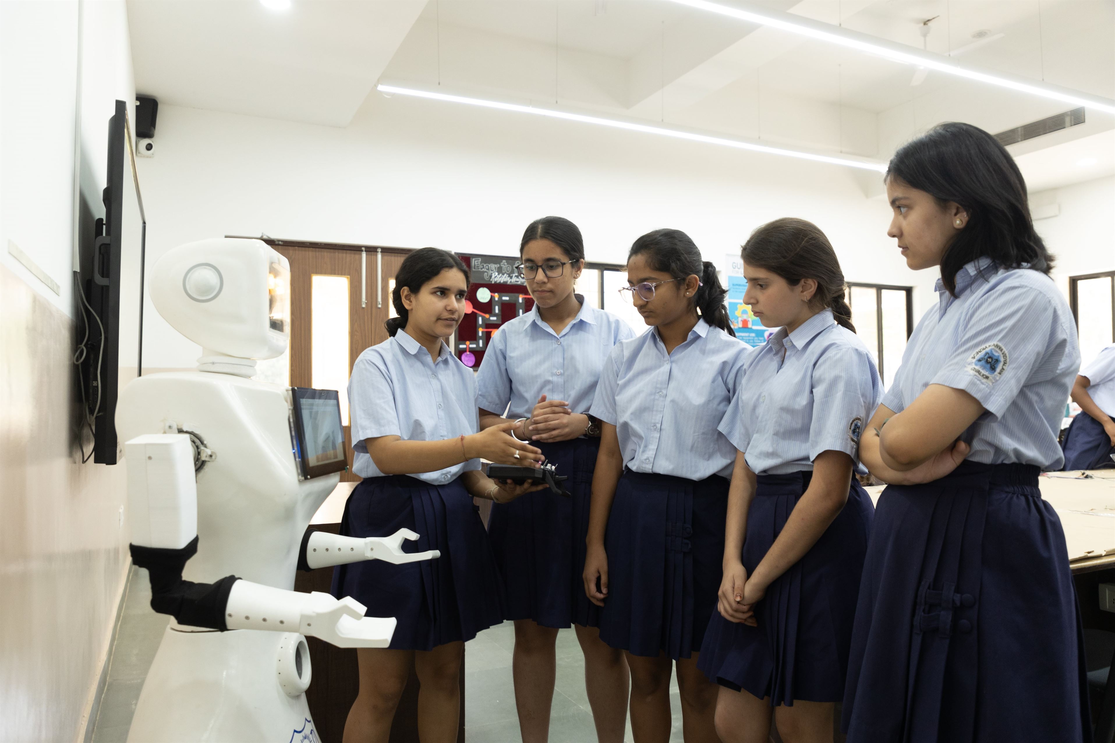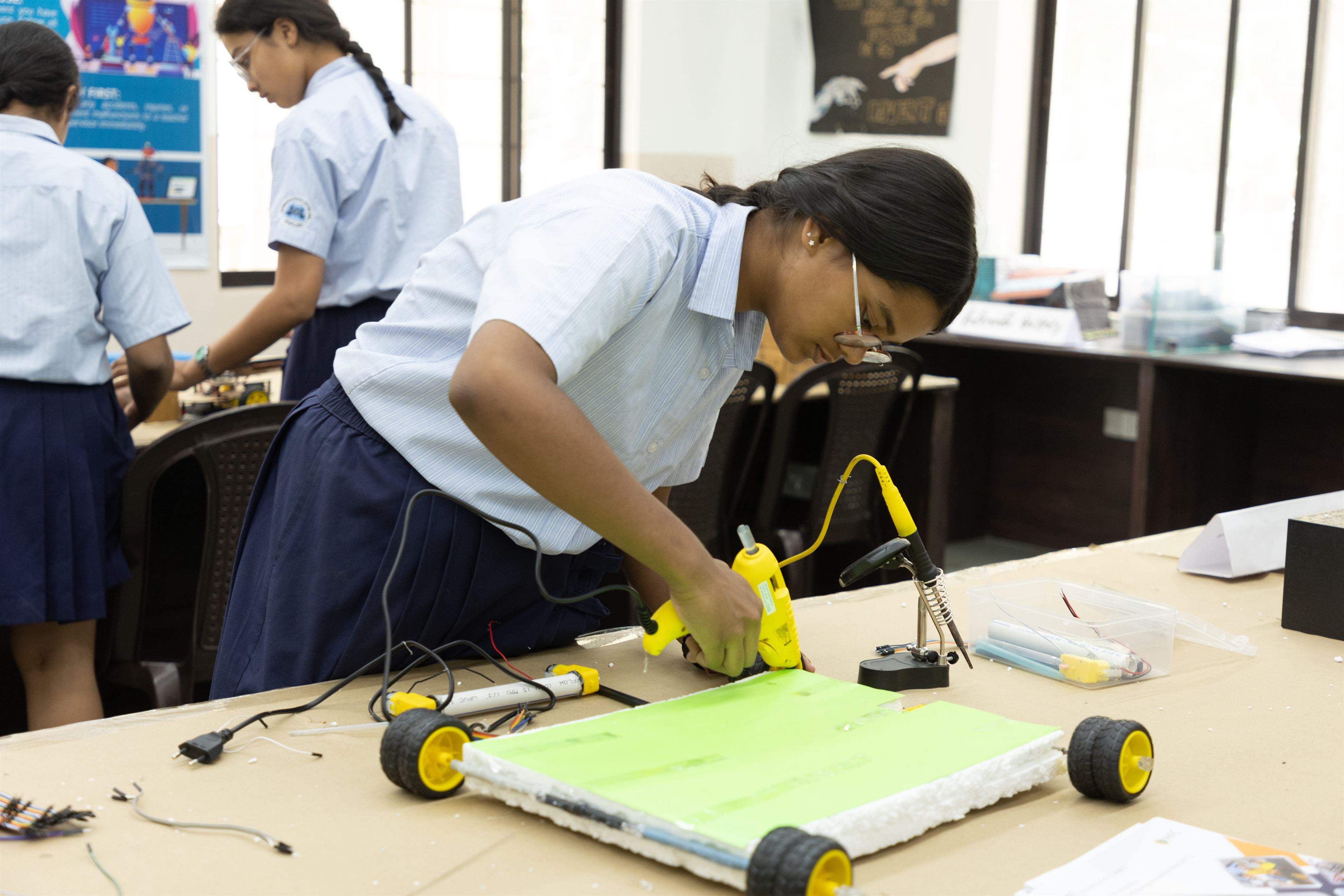 Explore and Experiment at SKV Labs! Our state-of-the-art labs provide a stimulating environment for hands-on learning across various disciplines. Conduct experiments in Biology, Chemistry, Physics, Biochemistry, and even delve into the human mind in the Psychology Lab. Hone your digital skills in our well-equipped Computer Labs, and explore the world through simulations and data in the Geography Lab. At SKV, we don't just study science, we create it! Experiment with the future in our Robotics Lab, or get a head start on financial literacy in the Mini Finance Lab. SKV Labs ignites curiosity and empowers you to become a master of discovery!